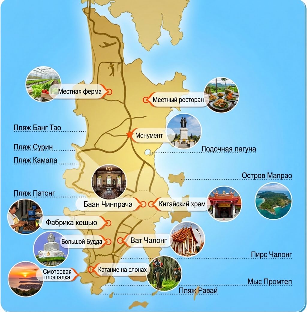 По всем перечисленным направлениям организуются однодневные экскурсии по Пхукету: групповые туры с трансфером и русскоязычным гидом или индивидуальные программы на частной лодке. Групповые экскурсии удобны готовым маршрутом и фиксированной ценой, индивидуальные — гибкостью графика и возможностью посетить те места, которые интересны именно вам.
