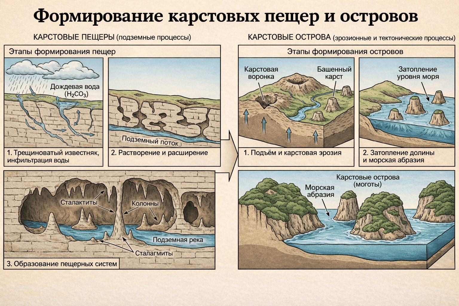 Ключ к пониманию прост: карстовые формации – это не «скалы из сказки», а результат сложных геологических и химических процессов. Горы буквально растворяются. Осадочный известняк когда-то был частью древнего кораллового рифа, а затем его «разъедала» вода, усиливая эрозию и раскрывая полости. Так появлялись пещеры и Хонги – замкнутые внутренние пространства, куда иногда можно попасть только при подходящем уровне моря. Местные легенды часто присваивают заслугу духам моря, но наука честно говорит: это долгий диалог камня и воды.