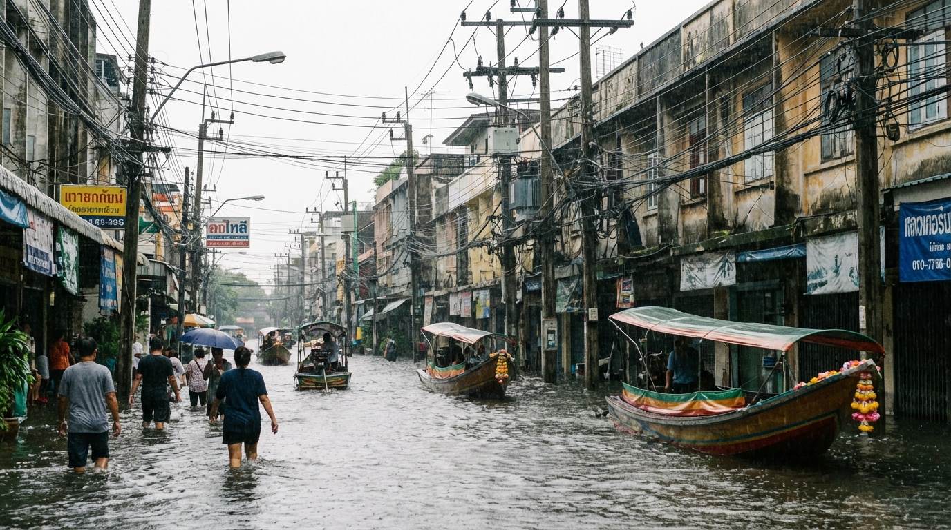 Высокий уровень грунтовых вод и регулярные затопления делают подземную прокладку рискованной затеей. Воздушные кабели, напротив, остаются относительно защищенными даже во время наводнений. Именно поэтому такой способ прокладки остается предпочтительным решением для тайских коммунальных служб, несмотря на очевидное визуальное загрязнение.
