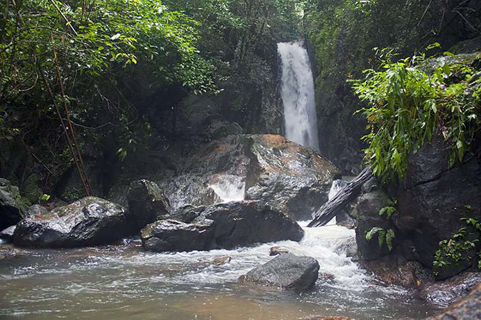 Двухкилометровая тропа проходит через девственные джунгли с редкими растениями, включая белые веерные пальмы и дикие орхидеи. Идеальное место для расслабления под звуки падающей воды.