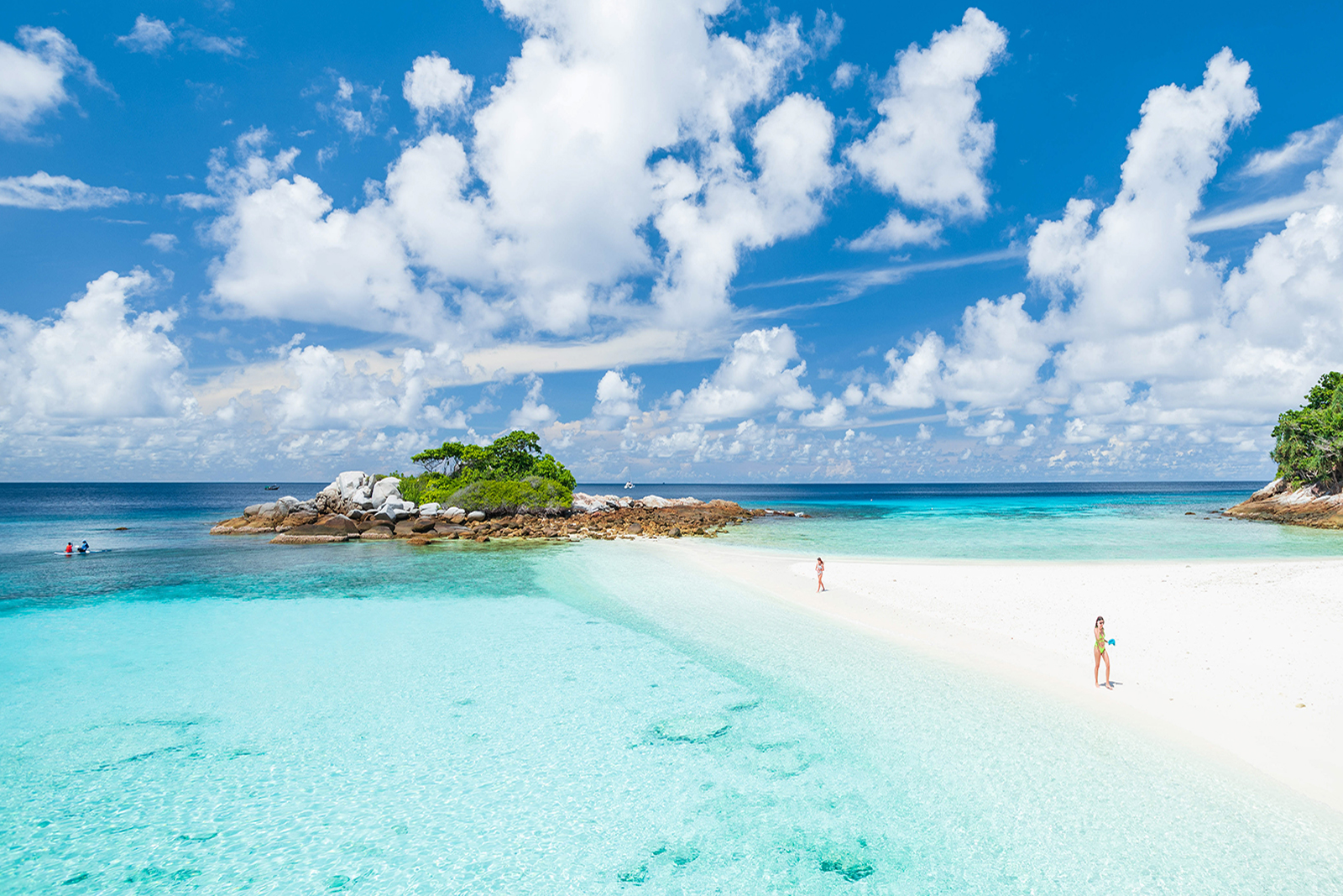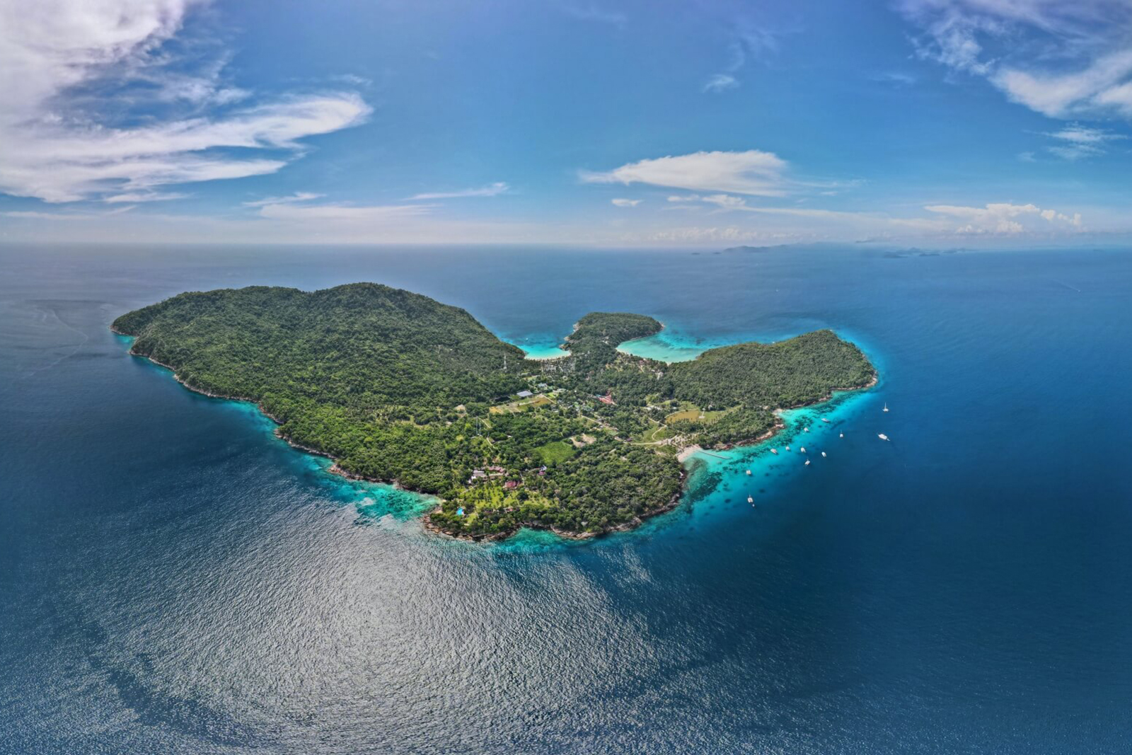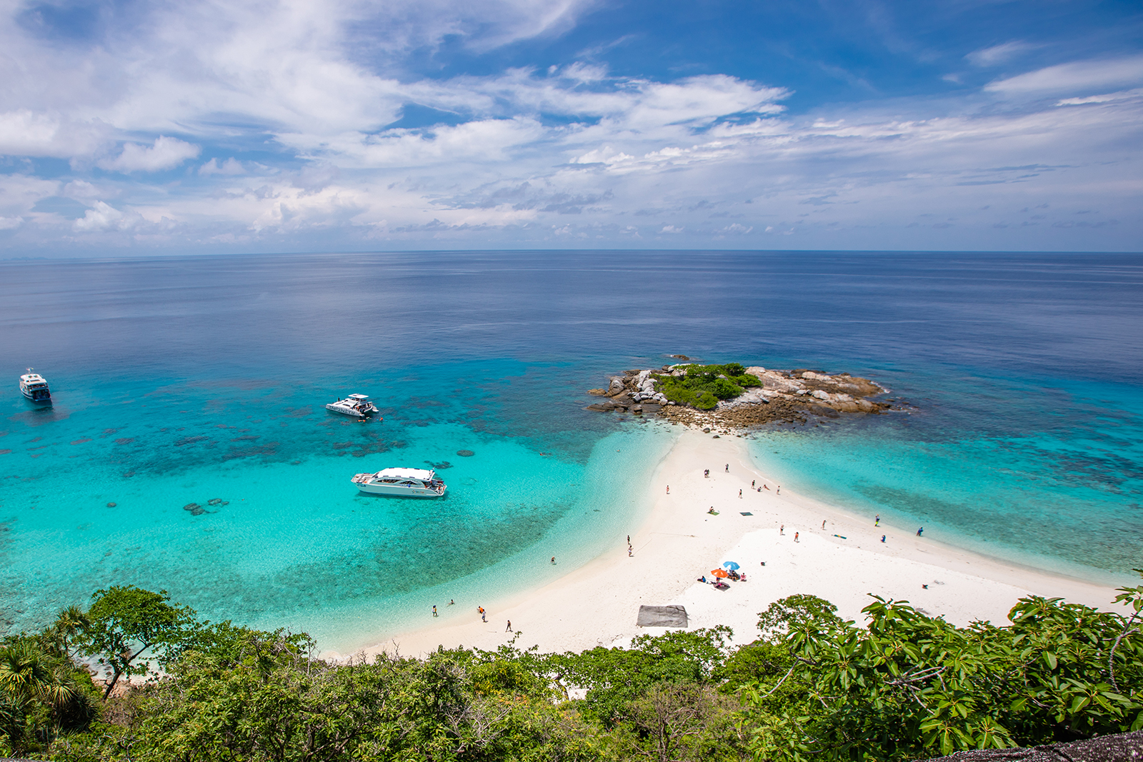 Рача Ной — необитаемый, с ярко-бирюзовой водой, белым песком и рифами, которые давно облюбовали дайверы и любители снорклинга. Здесь нет инфраструктуры, поэтому природа ощущается максимально живой: высокие холмы, обзорные точки и пляж, размер которого меняются в зависимости от прилива.