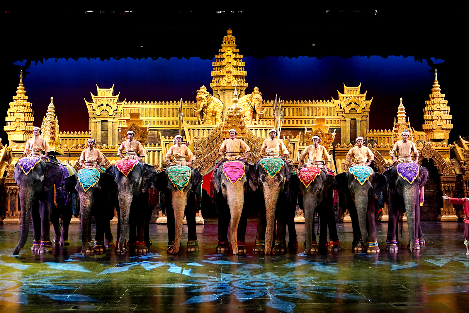 В шоу задействованы свыше 400 актеров, 44 слона и другие экзотические животные. Атмосфера этого праздника отлично подходит для семейного отдыха с ребенком. Здесь вы воочию увидите тайскую культуру, насыщенную фантастическими трюками, магическими фокусами и невероятным воздушным балетом. Меняя друг друга, на сцене выступают акробаты, слоны и каскадеры с сопровождением пиротехники и спецэффектов. Все это приводит в трепет и восхищение зрителей любого возраста.
