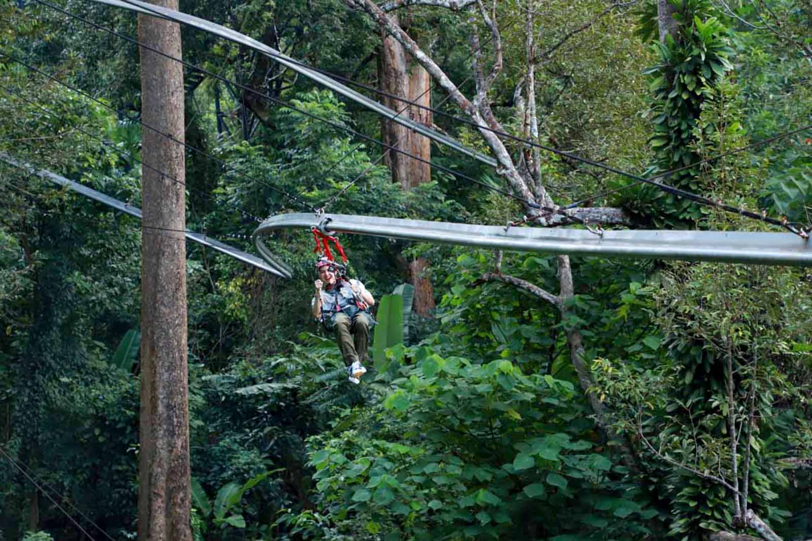 Принцип развлечения тот же, но добавлены новые разновидности трассы, такие как sky walk – живописная дорожка над землей с зоной для отдыха, и “Роллер” – монорельс среди деревьев, на котором вы пролетаете с большой скоростью.