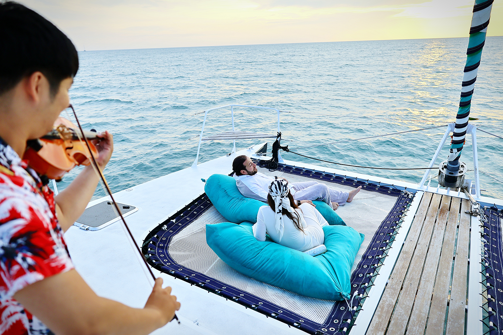 Тур проходит на парусном катамаране.