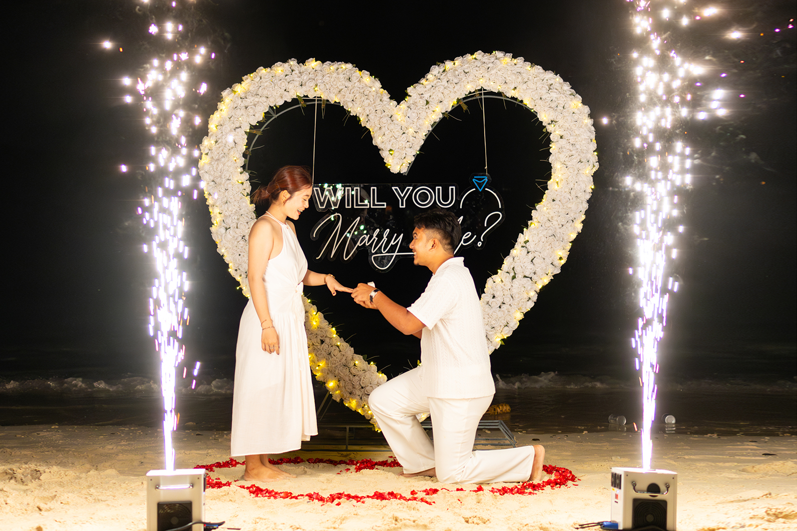Дополнительно можно заказать музыкальное сопровождение (виолончелист или саксофонист), фейерверк, фотограф, надпись Will you Marry Me